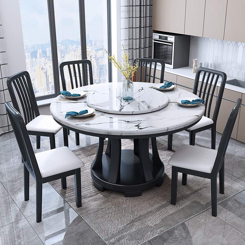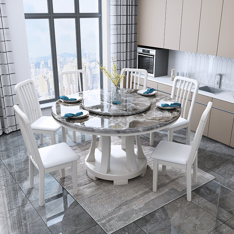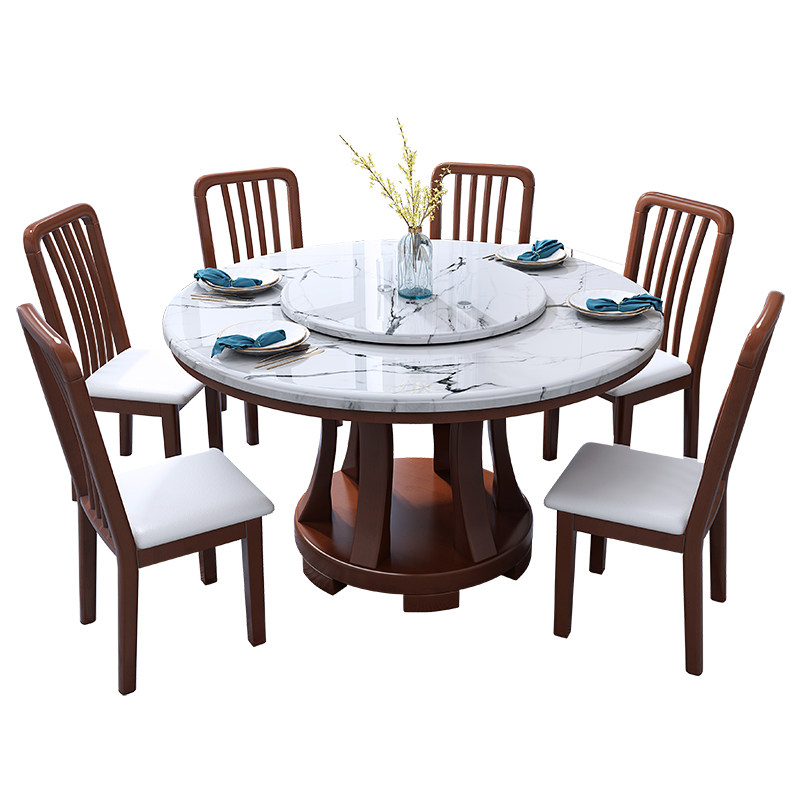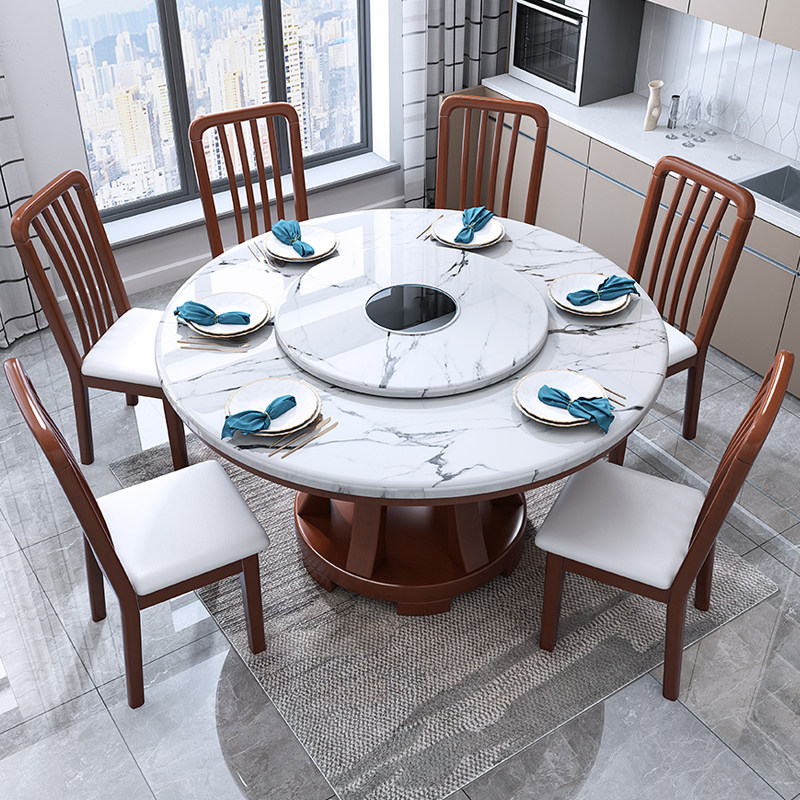 Modern simple marble dining table Solid wood dining table and chair combination with turntable round dining table Dining table Dining table Household