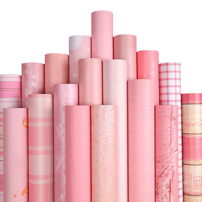 Pink wallpaper self-adhesive 10 m wallpaper girl bedroom waterproof moisture-proof desktop wardrobe furniture renovation wall sticker