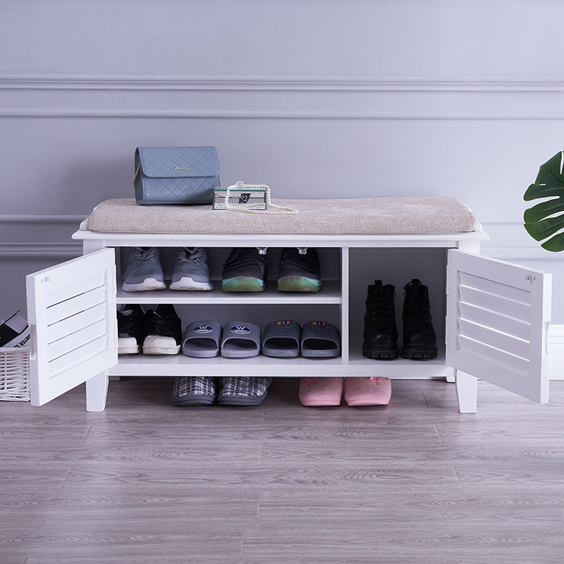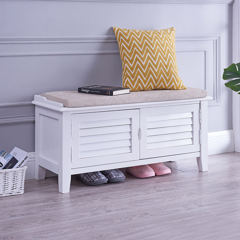Solid wood shoe changing stool home door soft bag cushion shoe cabinet style stool Nordic modern large capacity storage locker