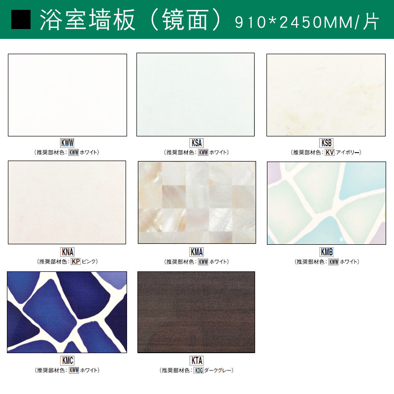 Mirror KWW (white) mirror KSA ((white ash) mirror KSB (rice yellow tile subsection) mirror KNA (light powder tile subsection) mirror KMA (mosaic magnetic brick section) mirror KM