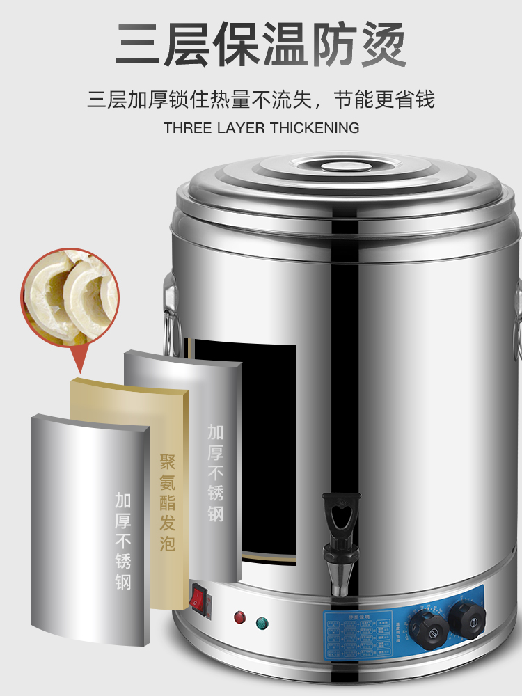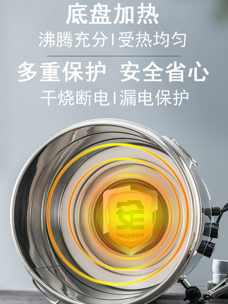 Stainless steel electric cooking bucket Porridge electric soup pot Commercial temperature control electric heating Plug-in insulation stew soup electric boiling water bucket