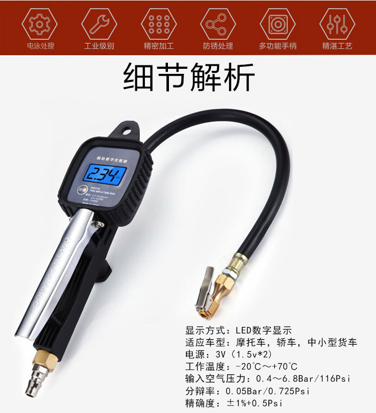 Digital Tyre Pressure Injection Pressure Pressure Treatment Pressure Monitor with Air-inflated Head Automobile Tire Pressure Monitor