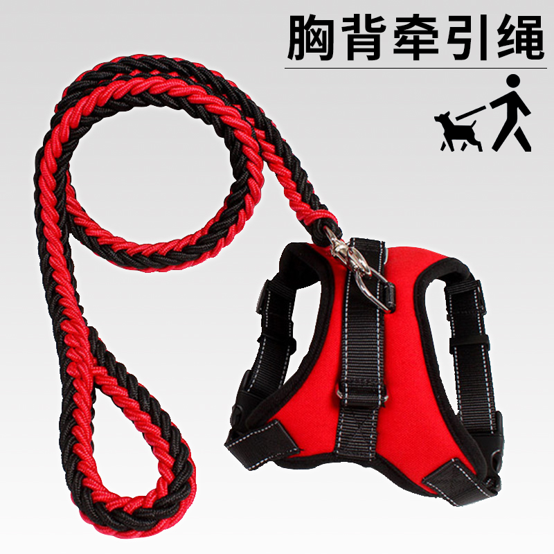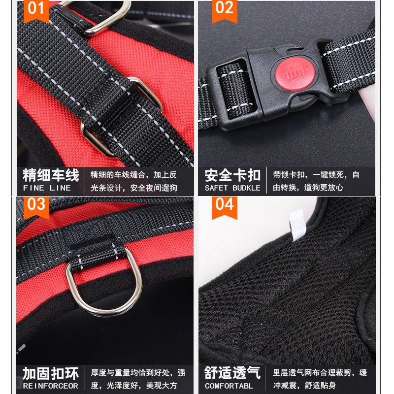Chest strap dog leash vest style golden retriever walking dog leash explosion-proof punching medium and large dogs Oxford cloth collar dog chain