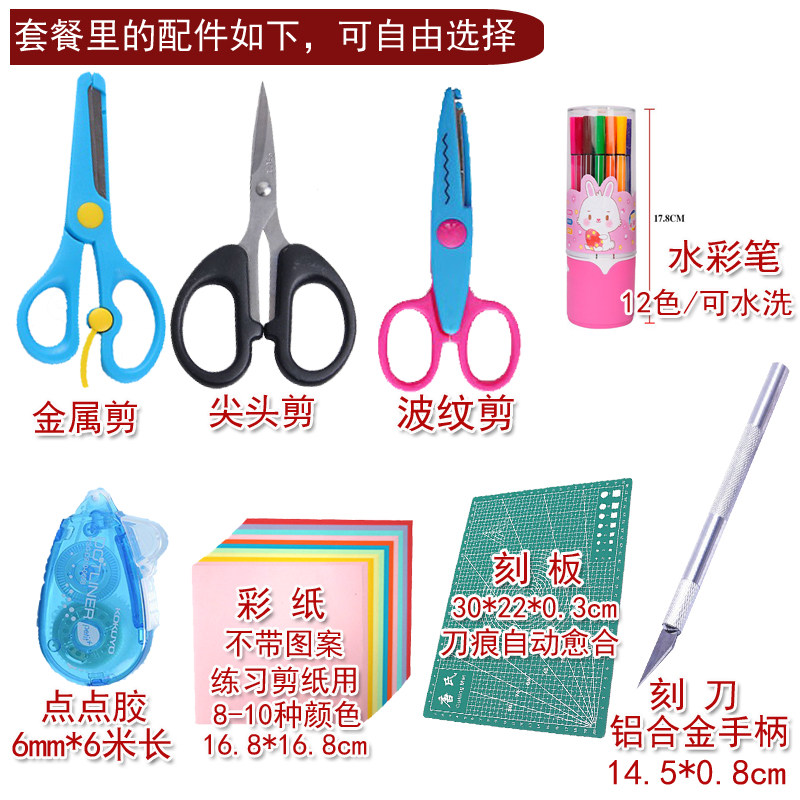 Four-corner paper cutting (without scissors) Four corners paper cutting + metal cutting Four corners paper cutting + Sharp paper cutting Four corners paper cutting + 2 scissors Four corners paper cutting + Metal cutting + Dispensing four corners paper cutting + Pointed tip cutting + Dispensing four corners paper cutting + 2 scissors + Dispensing four corners paper cutting + Dispensing (without cutting) Four-corner paper cutting + pointed paper cutting + color paper four corners paper cutting + pointed paper + color paper + glue four corners paper cutting + glue paper four corners paper cutting + glue + engraving knife four corners paper cutting + engraving knife + Stereotyped four-corner paper-cutting + color paper + glue + pointed scissors + knife + board four-corner paper cutting + 2 scissors + color paper + glue + knife + board