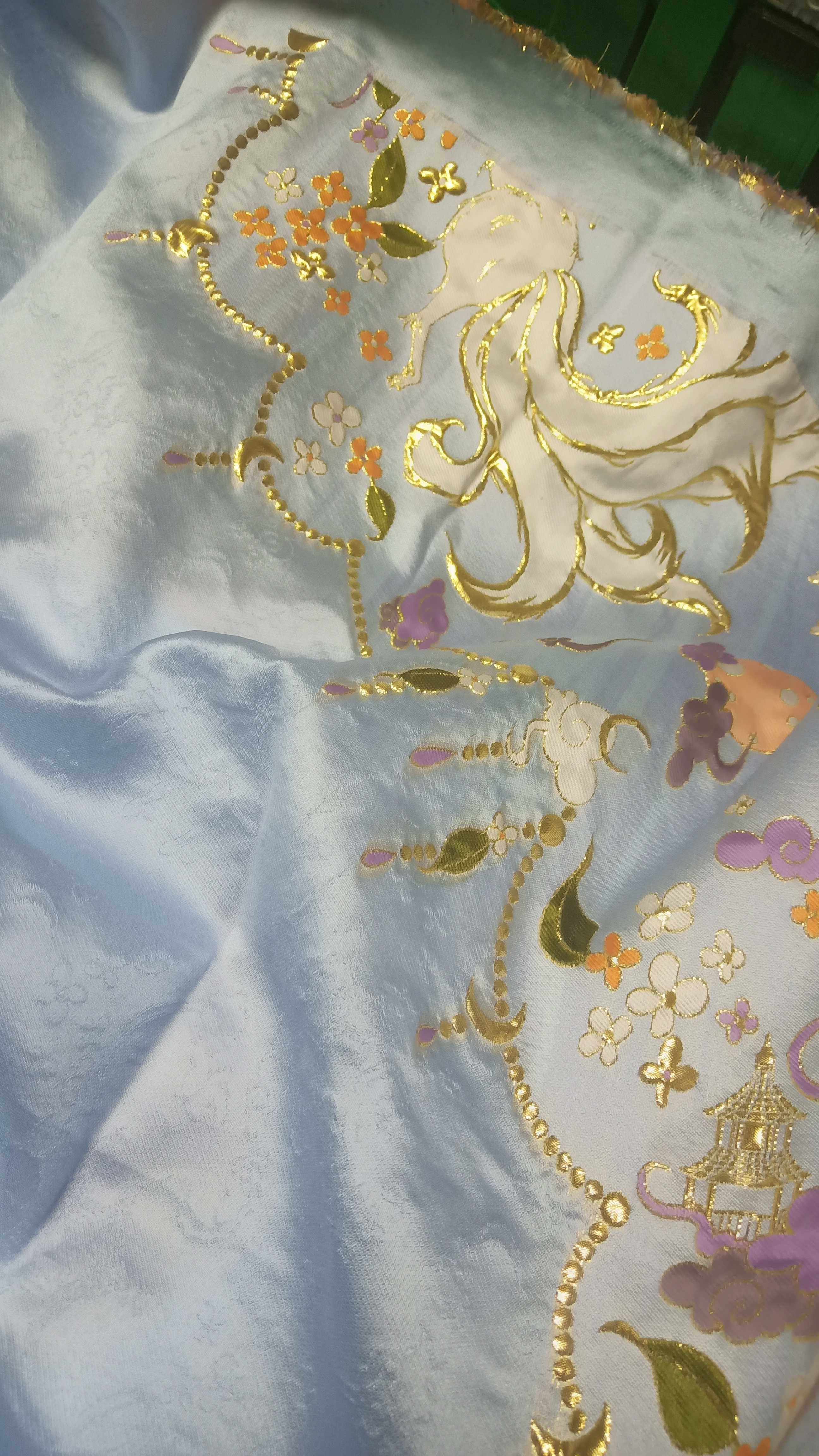 Nine tail fox sculpture weaving gold yarn