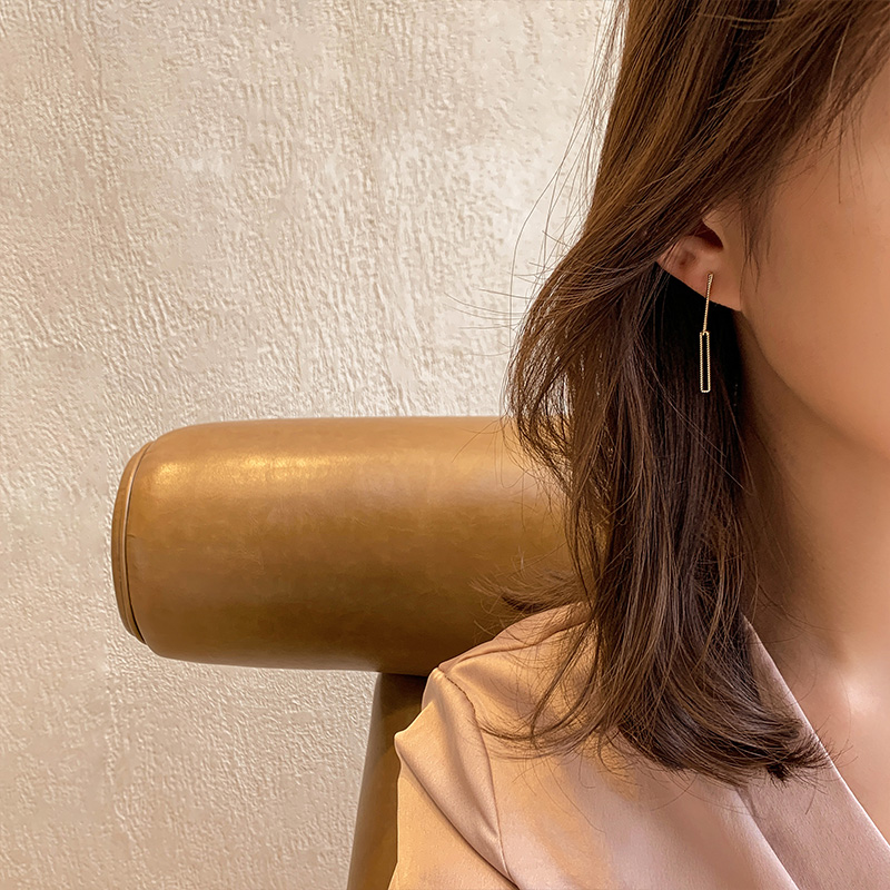 MS fit square face temperament earrings retro Hong Kong style niche design premium sense earrings female personality thin cutout