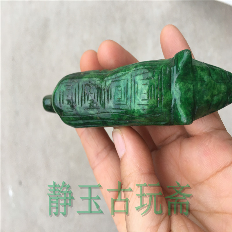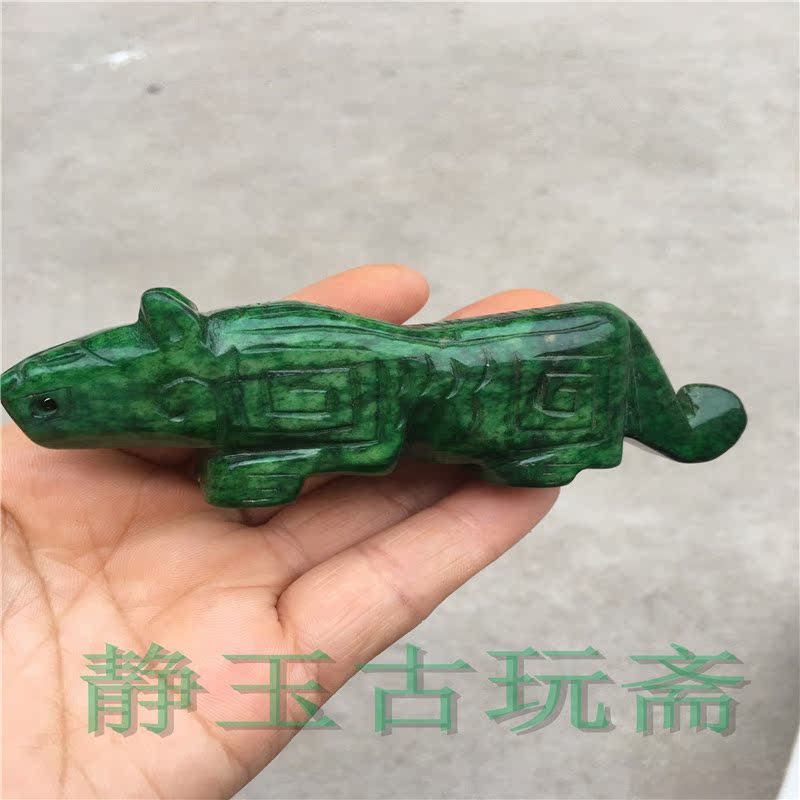 Imitation of ancient green, old Xiuyu, old paste, jade tiger antique collection, tiger handle unearthed in the late 7,000-year culture