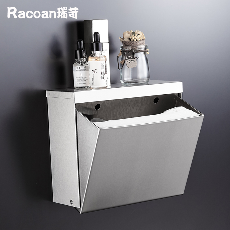 304 Stainless Steel Wall-mounted Upscale Hotel Toilet Makeup Room Grass Paper Drum Toilet Paper Extraction Type Sanitary Paper Box Release free of punch