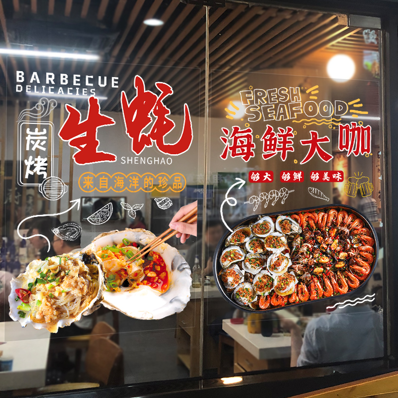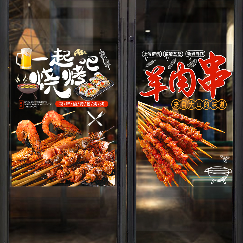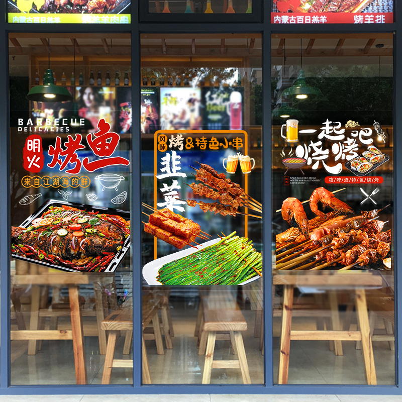 Barbecue Dining Room Shop Glass Door Stickers in Restaurant Hotpot Shops Shop Window Wall Decorative Wall Applique
