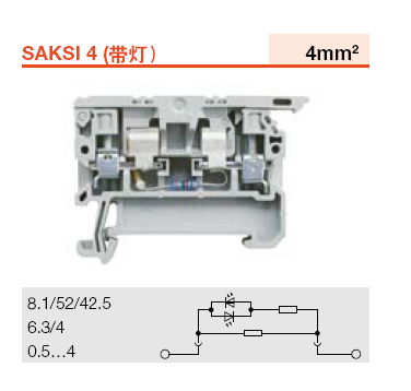 Weidmüller fuse terminal SAKSI 4 LD 1D 24V AC DC with indicator light 1255780000