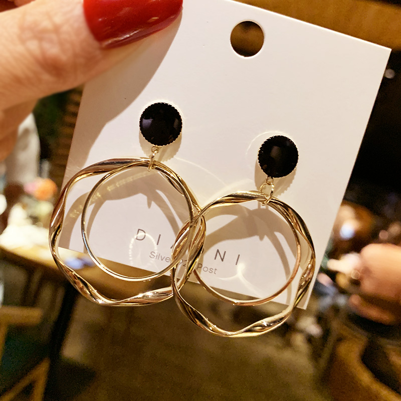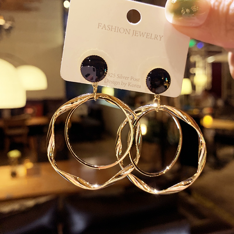 Korean temperament network red earnail pure silver personality earrings Korean song Huiqiao same metal circle cold wind earrings