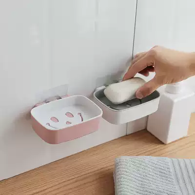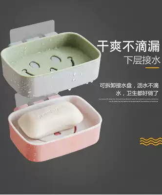 Creative double-layer soap box suction cup wall-mounted soap box rack drain cosmetic room non-perforated cute smiling face rack