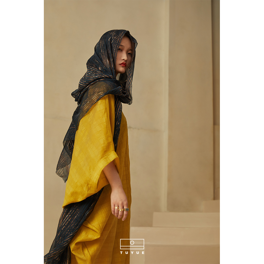 TUYUE coated moon designer bright yellow dark tattoo tencel sunscreen woman summer long sleeve thin covered head loose robe