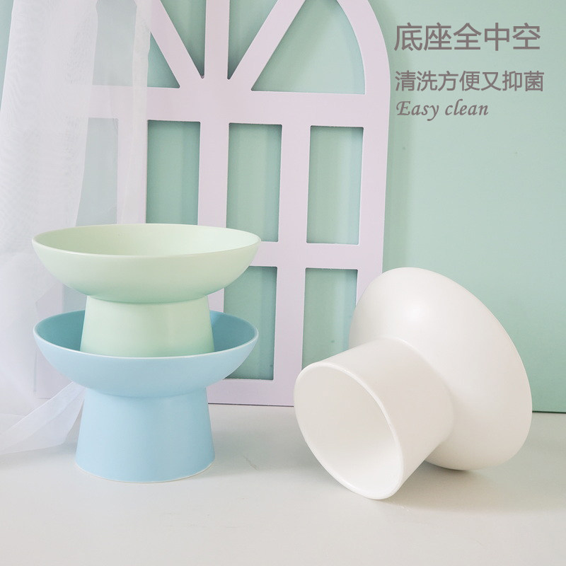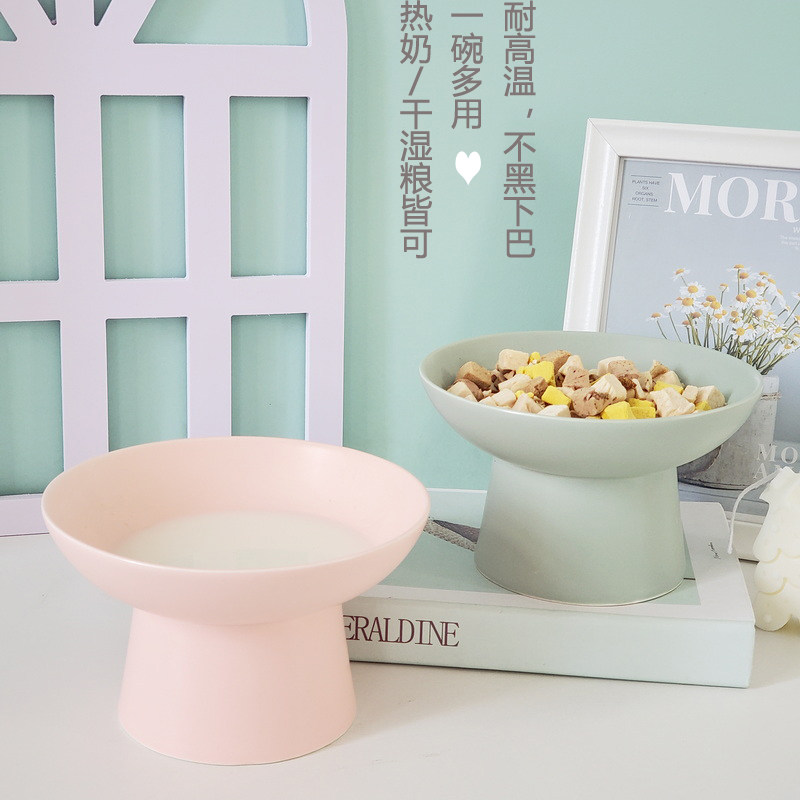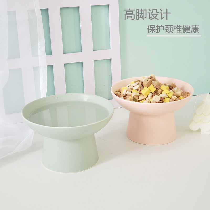 Cat rice bowl ceramic protection cervical vertebra high foot shallow mouth food bowl Garfield flat face cat special food bowl pet cat and dog water bowl