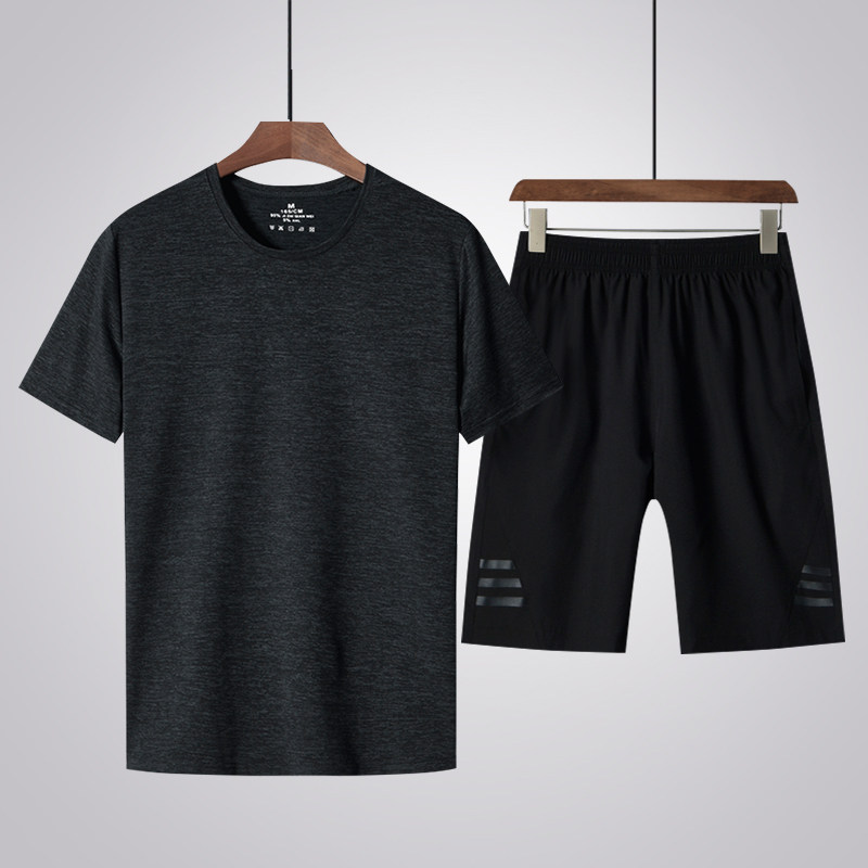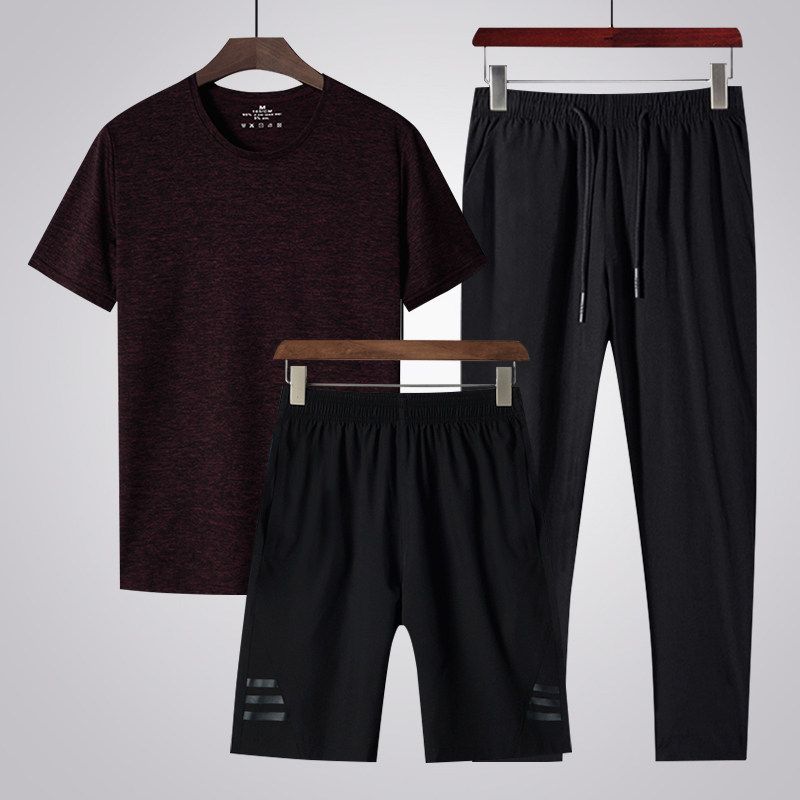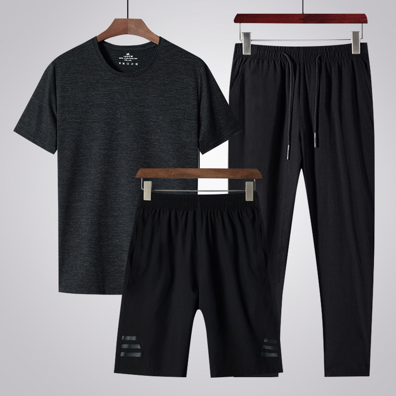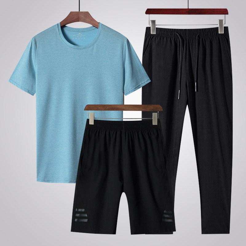 Middle-aged men's short sleeve t-shirt shorts trousers three pieces of leisure sports summer ice wire breathable speed dry daddy