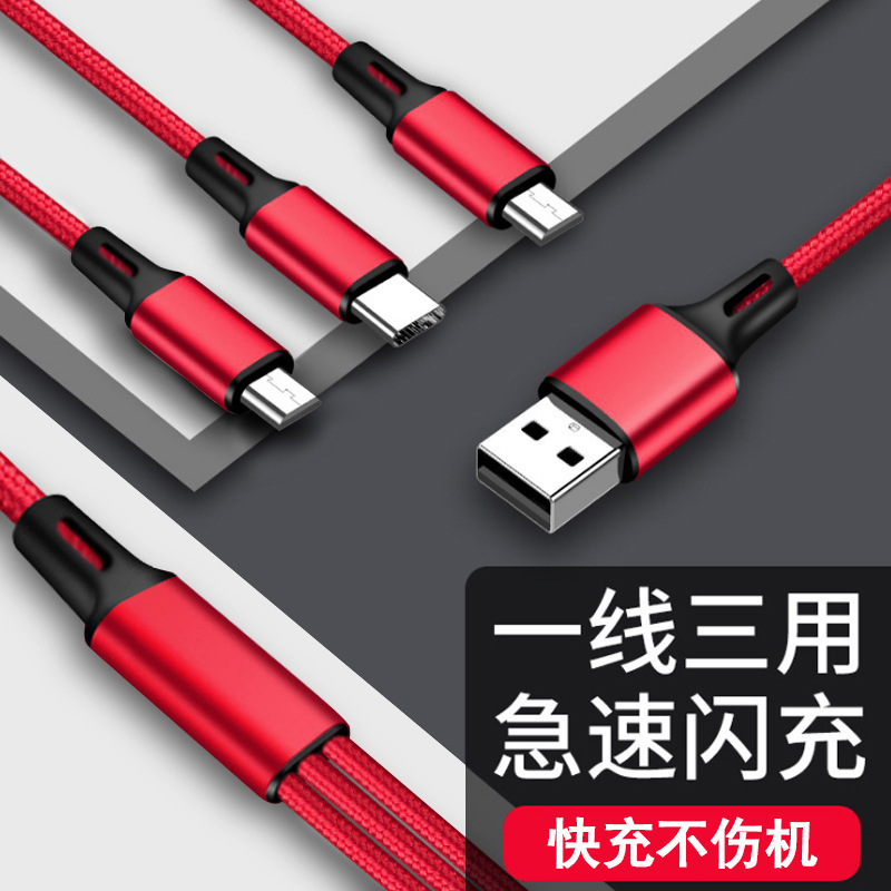 China red mobile phone data cable three-in-one fast charging suitable for Apple Huawei typec multi-head Android car