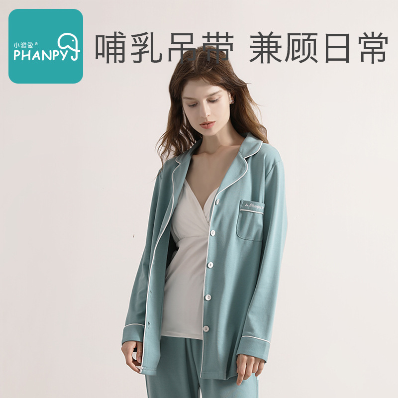 Xiaoyan Elephant Moon Clothes Pure Cotton Postpartum Breastfeeding Pajamas Pregnant Women During Pregnancy Loose Breathable Thin Sweat Absorbing Three-Piece Set