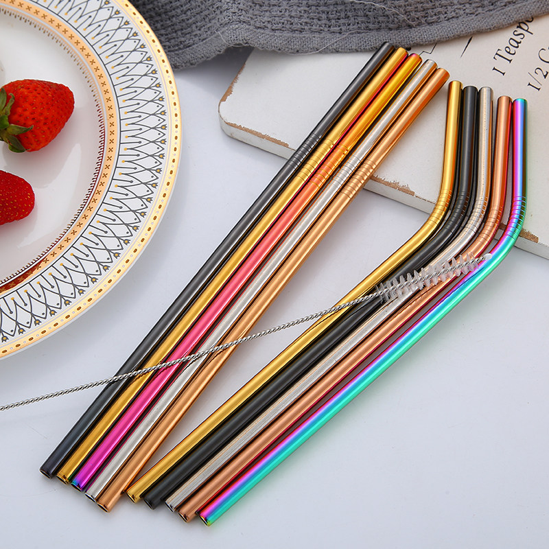 Non-disposable 304 stainless steel milk tea shop coffee shop household large-caliber straight pipe elbow beverage straw