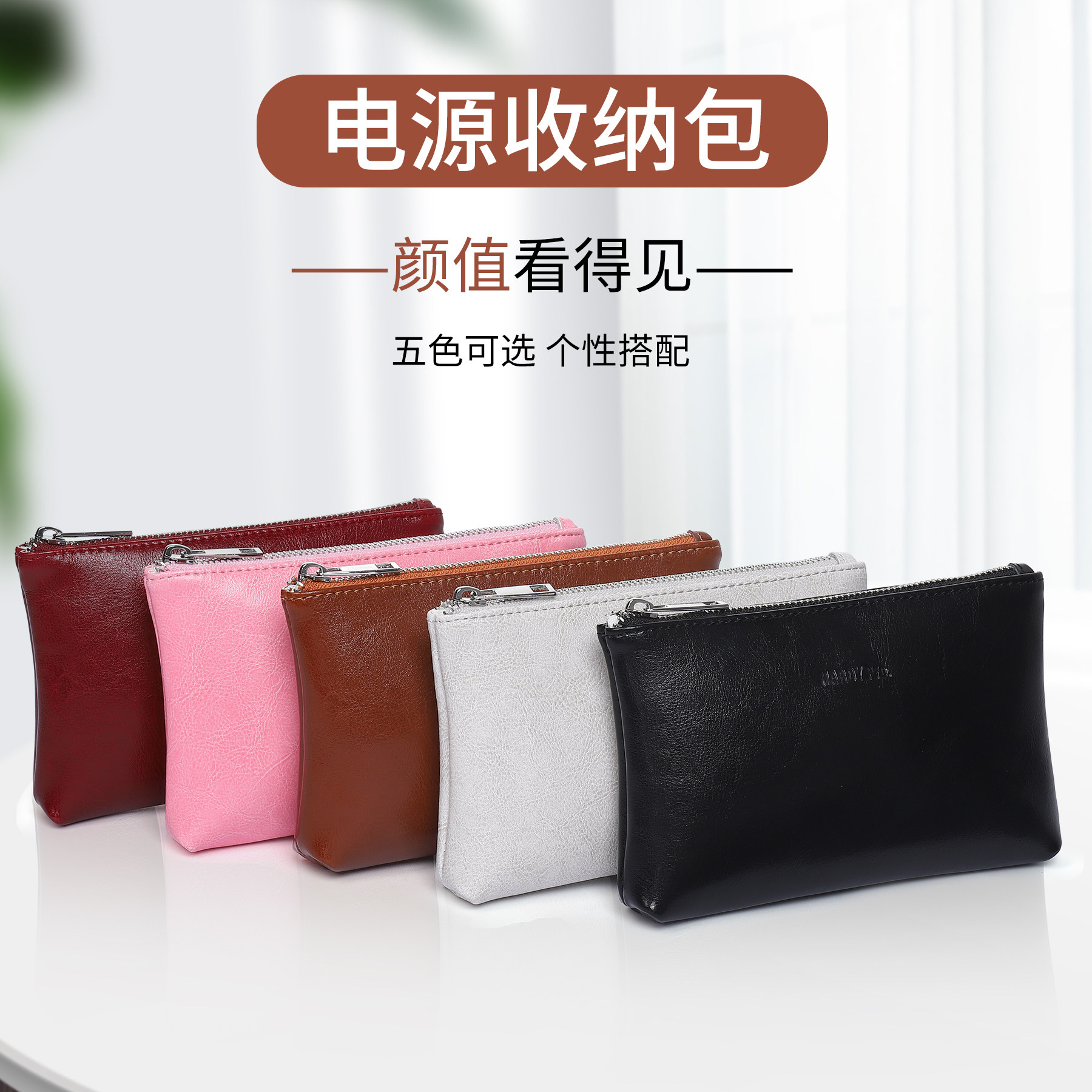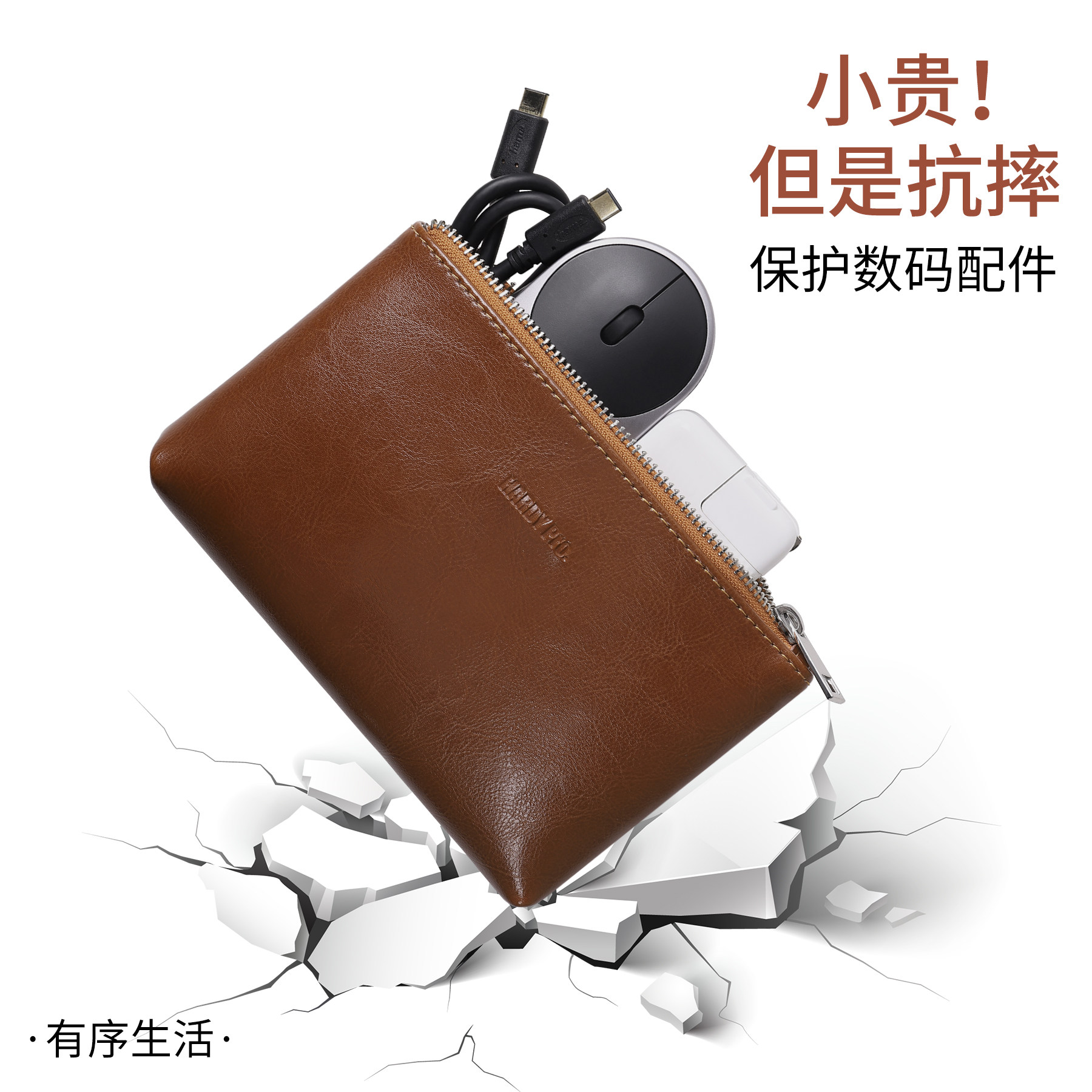 Suitable for Apple Huawei laptop power mouse bag digital storage portable zipper bag portable hard drive leather