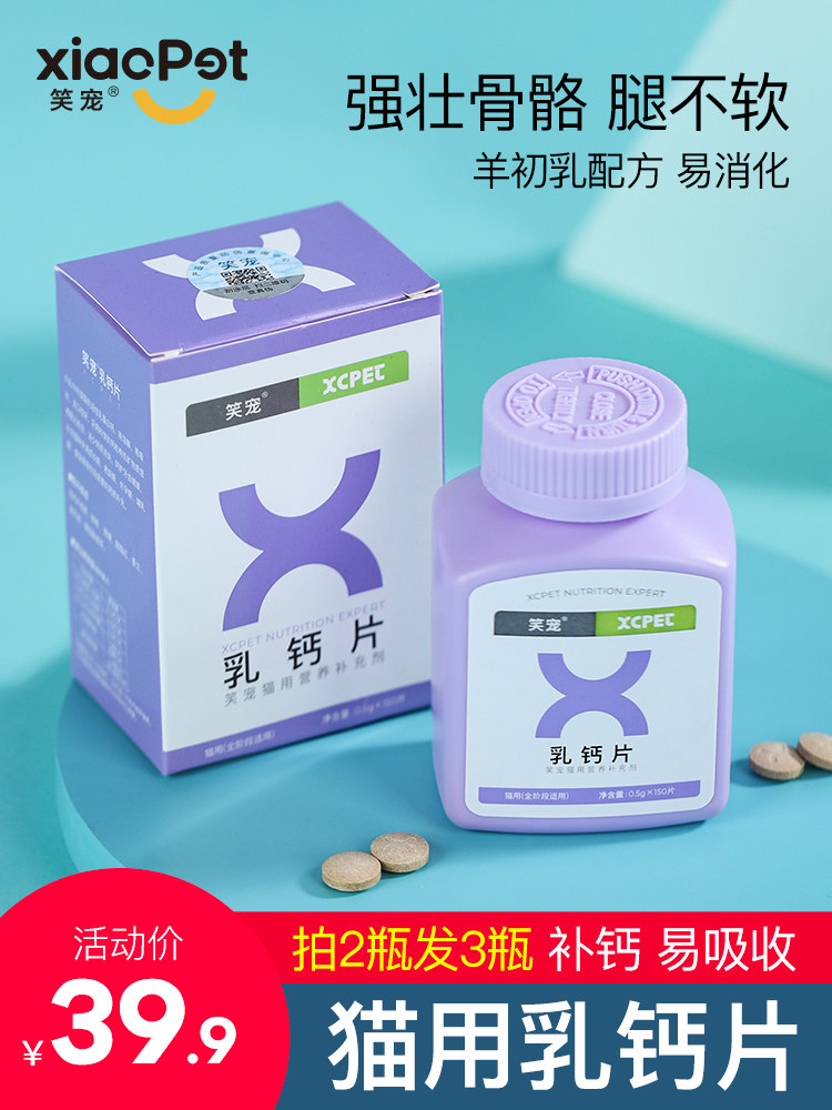 Laughing cat special milk calcium tablets bone-building calcium supplement small kittens pregnant cat British short-haired American short-haired blue cat nutrition and health care supplies