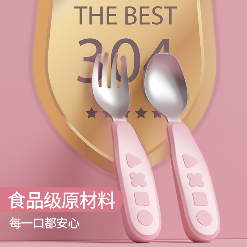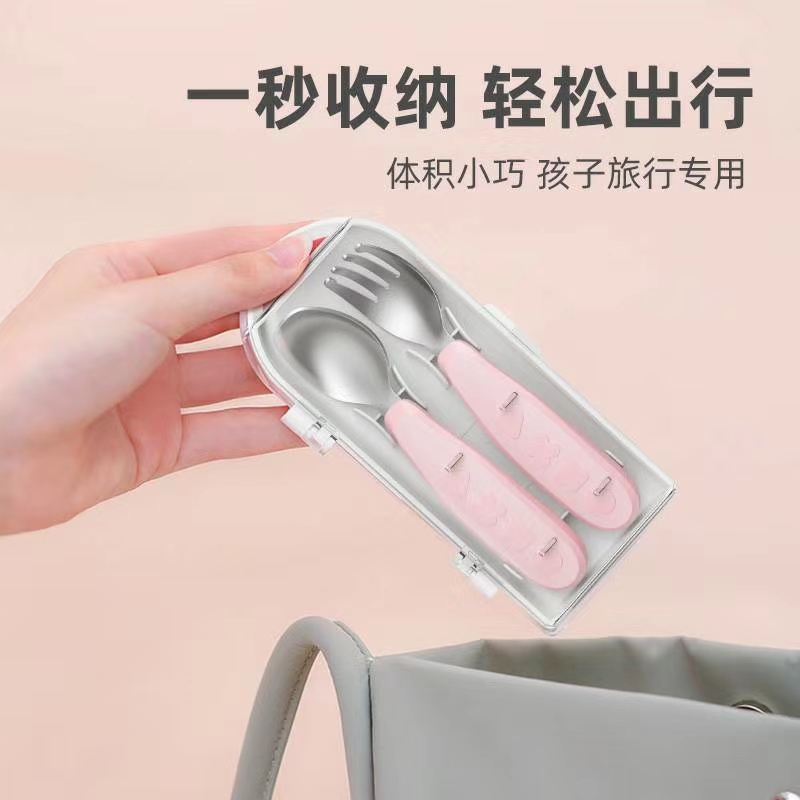 octoto children Stainless Steel Fork Spoon Baby School Meals Spoon Vice Food Training Cutlery Spoon Fork with box