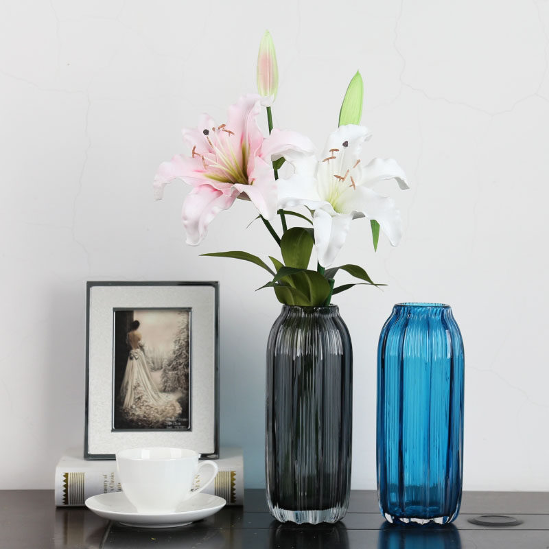Nordic minimalist modern grey glazed vase glass hydropony floral flower lily rose living-room table hem