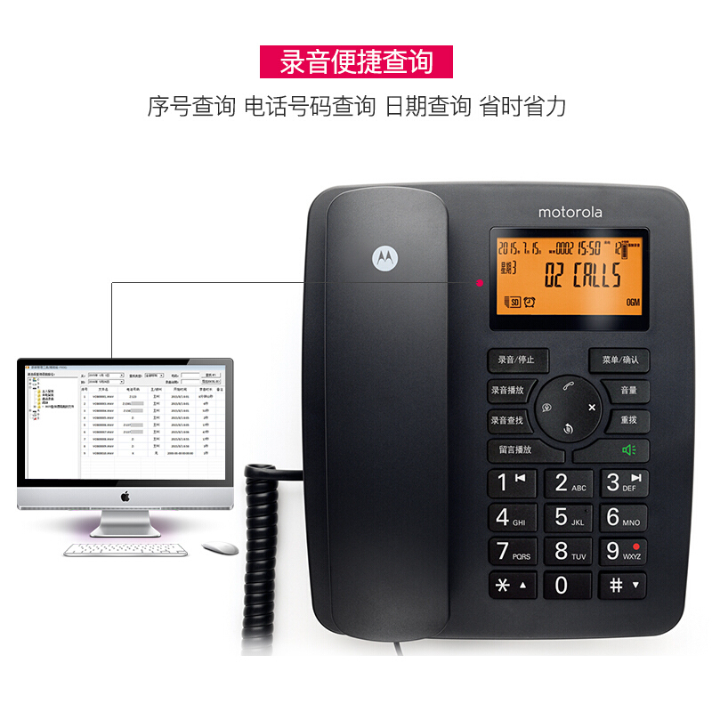 MotorolaCT111C automatic recording telephone telephone landline telephone holder office Home fixed telephone 8G Recording telephone CT700 Recording stand-alone SD card recording