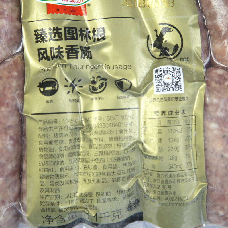 Humel Reserve Thuringian Flavored Sausage 1.1kg German Sausage Breakfast Sausage Volcanic Stone Western Hot Dog Sausage