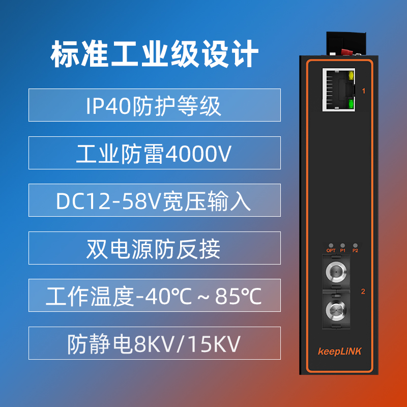 keepLINK Youlian industrial-grade Ethernet switch Gigabit optional industrial-grade fiber optic transceiver Din-rail installation suitable for harsh environments KP-9000-53-1FX1