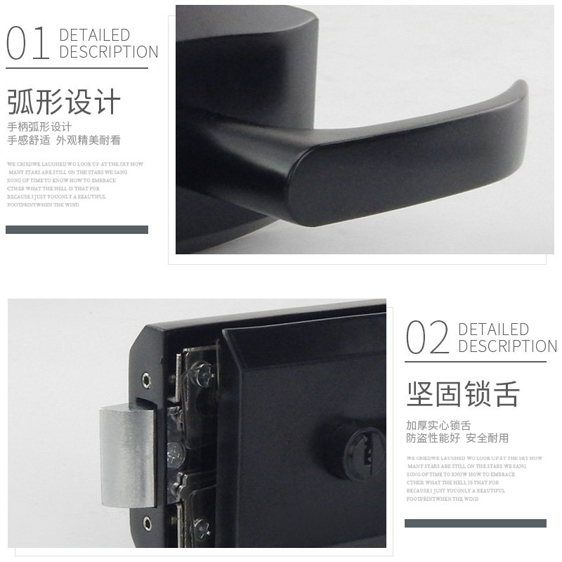 Black glass door handle lock inside and out open pressure hand lock single door double door office partition door handle lock