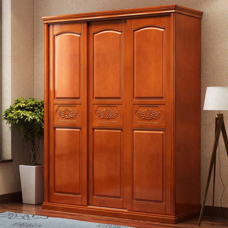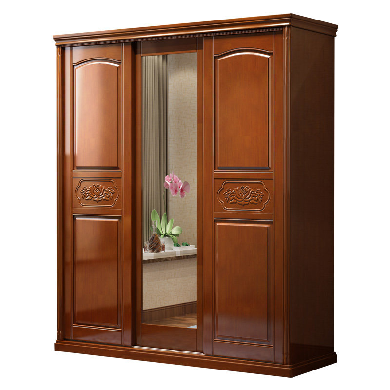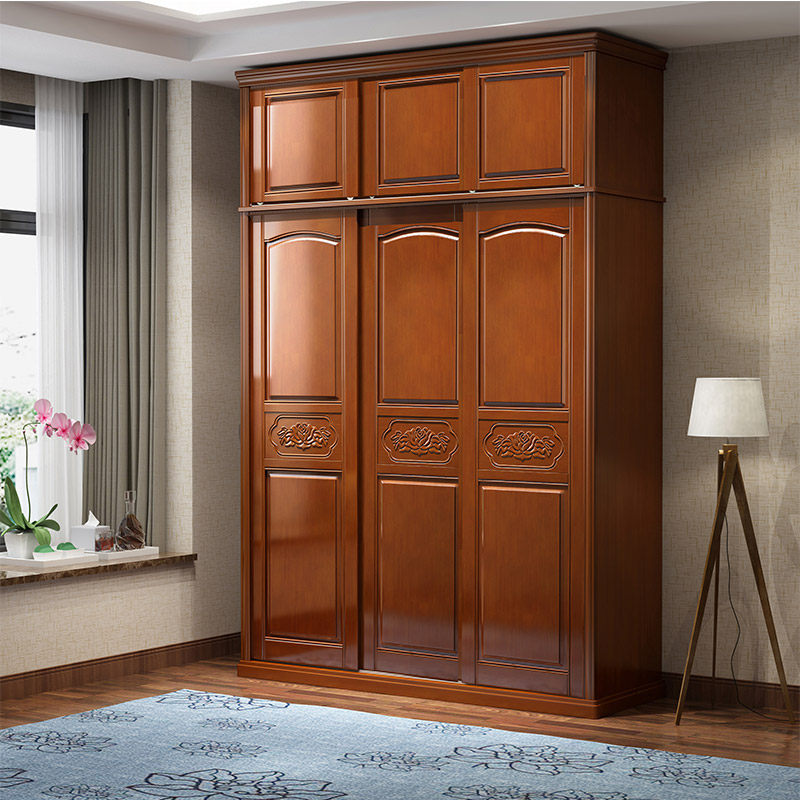 Mingxuan new Chinese-style solid wood wardrobe home small bedroom sliding door storage layered partition large wardrobe