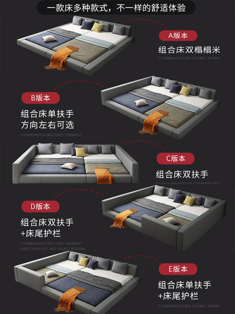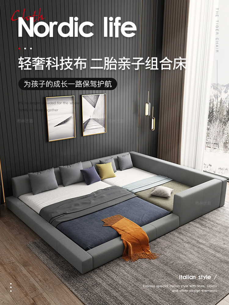 Two-child family parent-child bed a family of three or four tatami bed master bedroom king bed 3 meters oversized wash-free technology cloth bed