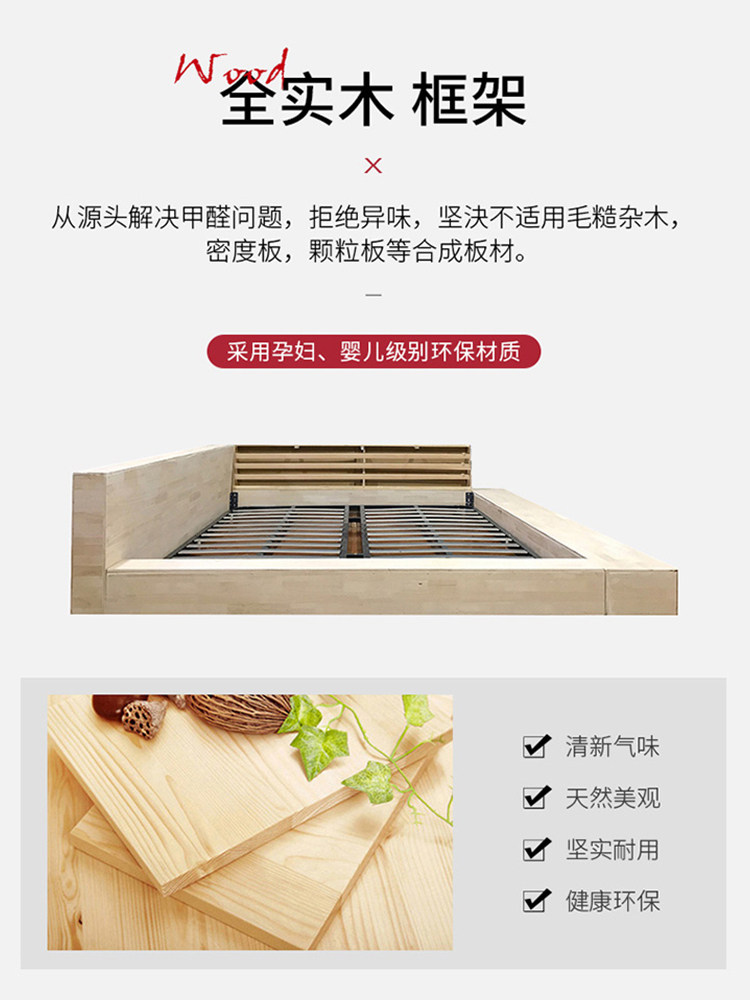 All solid wood frame 1 8 meters single bed technology cloth all solid wood frame 1 8 meters Eco-friendly coconut palm mattress all solid wood frame 1 8 meters Natural latex mattress all solid wood 0 8 1 5 meters bed (set