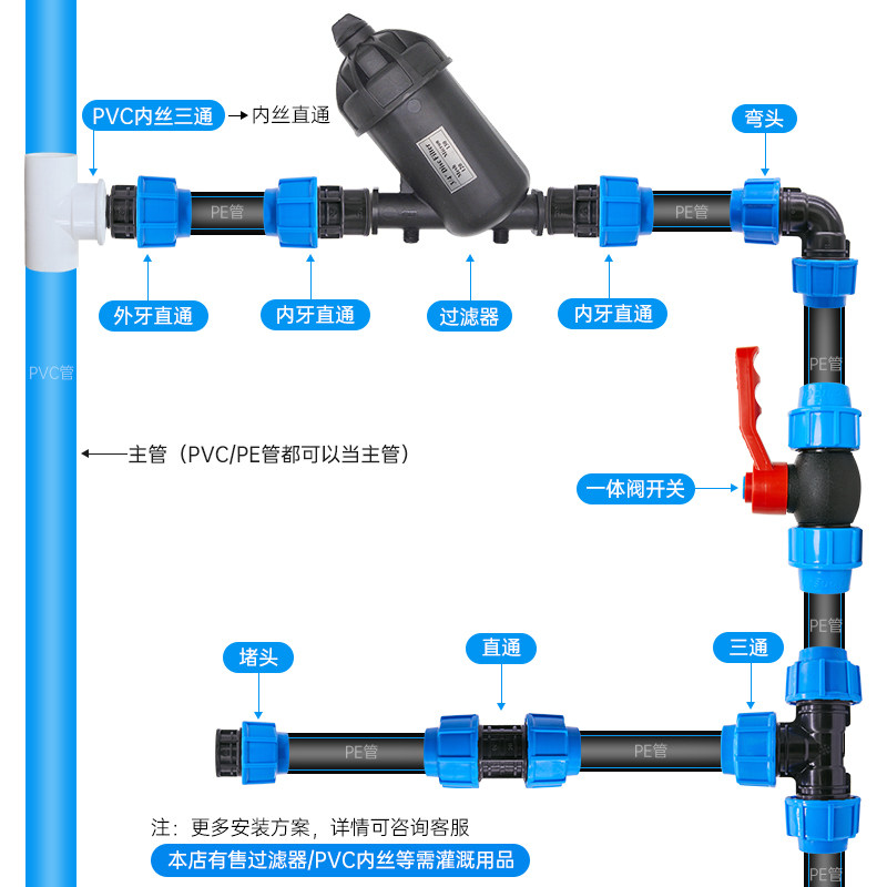 50PE pipe accessories drip irrigation pipe capillary straight-through three-way elbow choke plug irrigation pipe accessories greenhouse accessories
