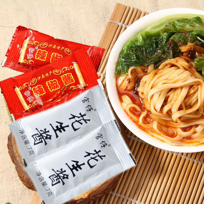 Guan Zai Sha County Authentic Peanut Butter Chili Sauce 7g Small Package Takeaway Home Mixed Pasta Mix Pink and Cold Peel