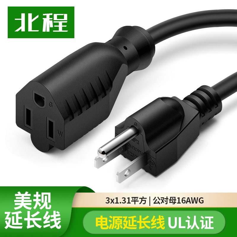 ULAmerican American gauge American extension cord power cord American power extension cord male to female lengthened 2 meters 16AWG cord
