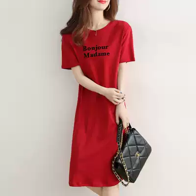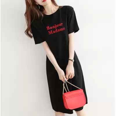 Malcenl klon2020 new super white temperament solid color letter printing medium and long version of the dress
