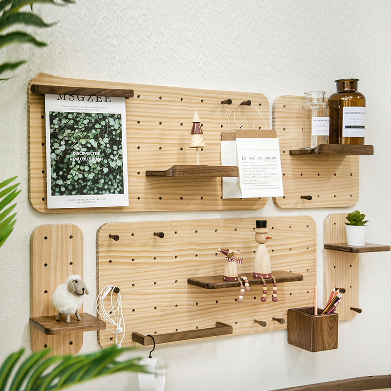 Hole-Free Dongle Board Solid Wood Hung Wall Containing Board Wooden Board Bookshelves TV Wall Partition Wall Shelf