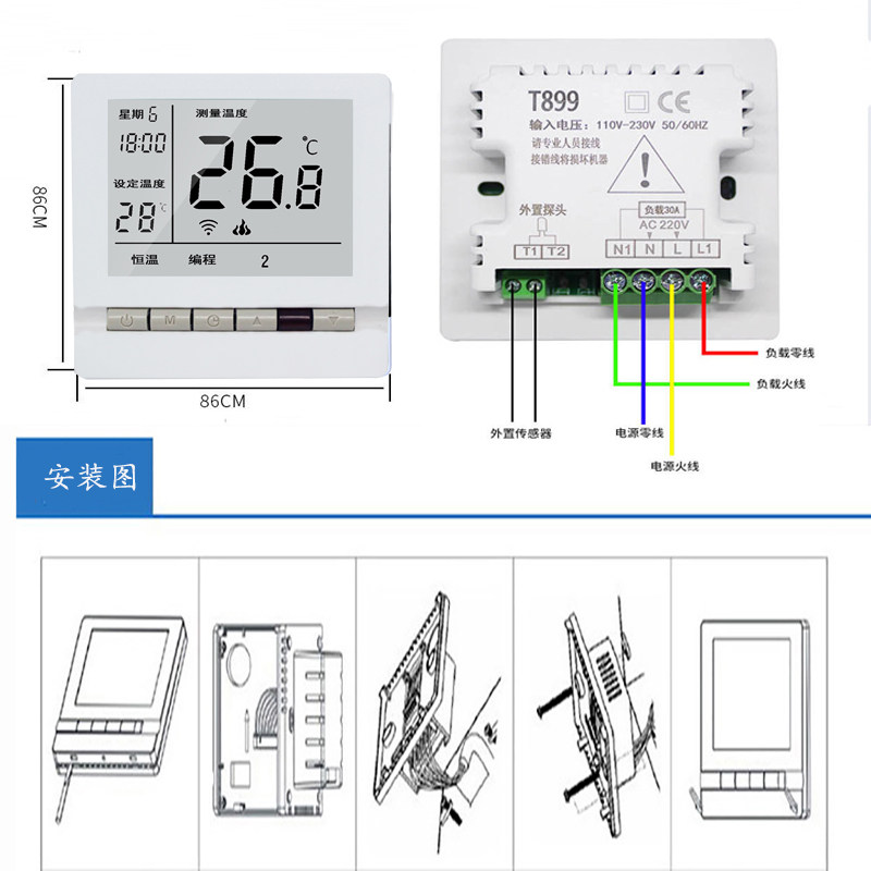 Electric floor heating temperature controller mobile phone WiFi remote smart switch heating thermostat liquid crystal panel programming-Taobao