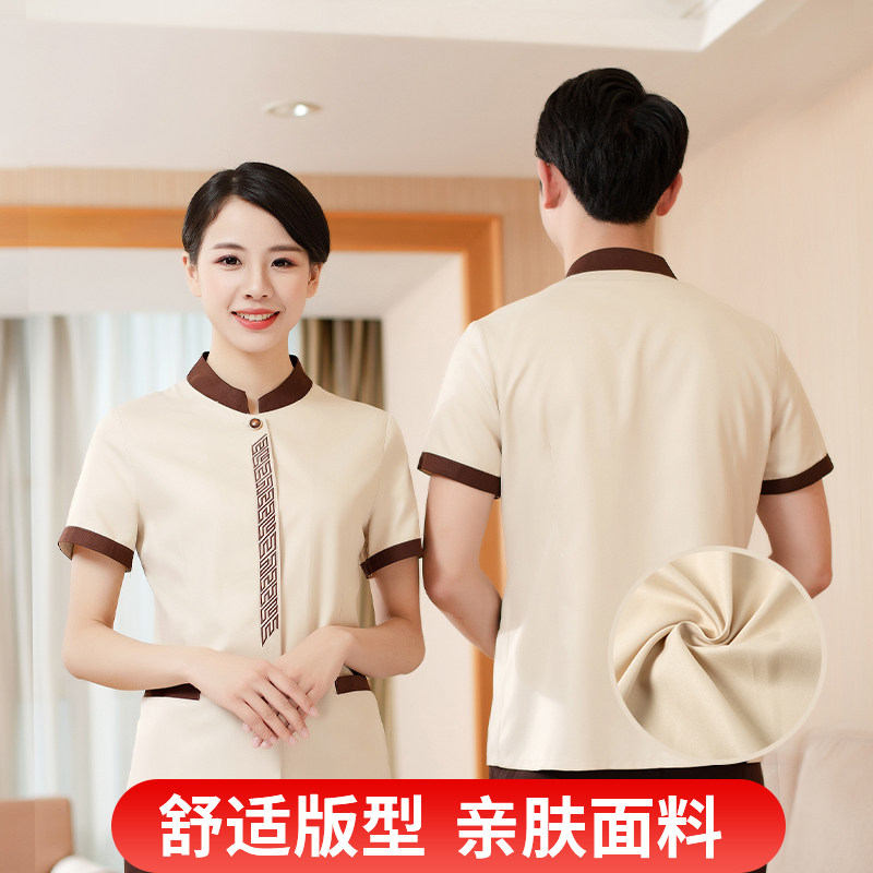 Clean Clothing Short Sleeve Summer Suit Hotel Guest House Hospital KTV keeper Auntie Property Door Embroidered Blouse