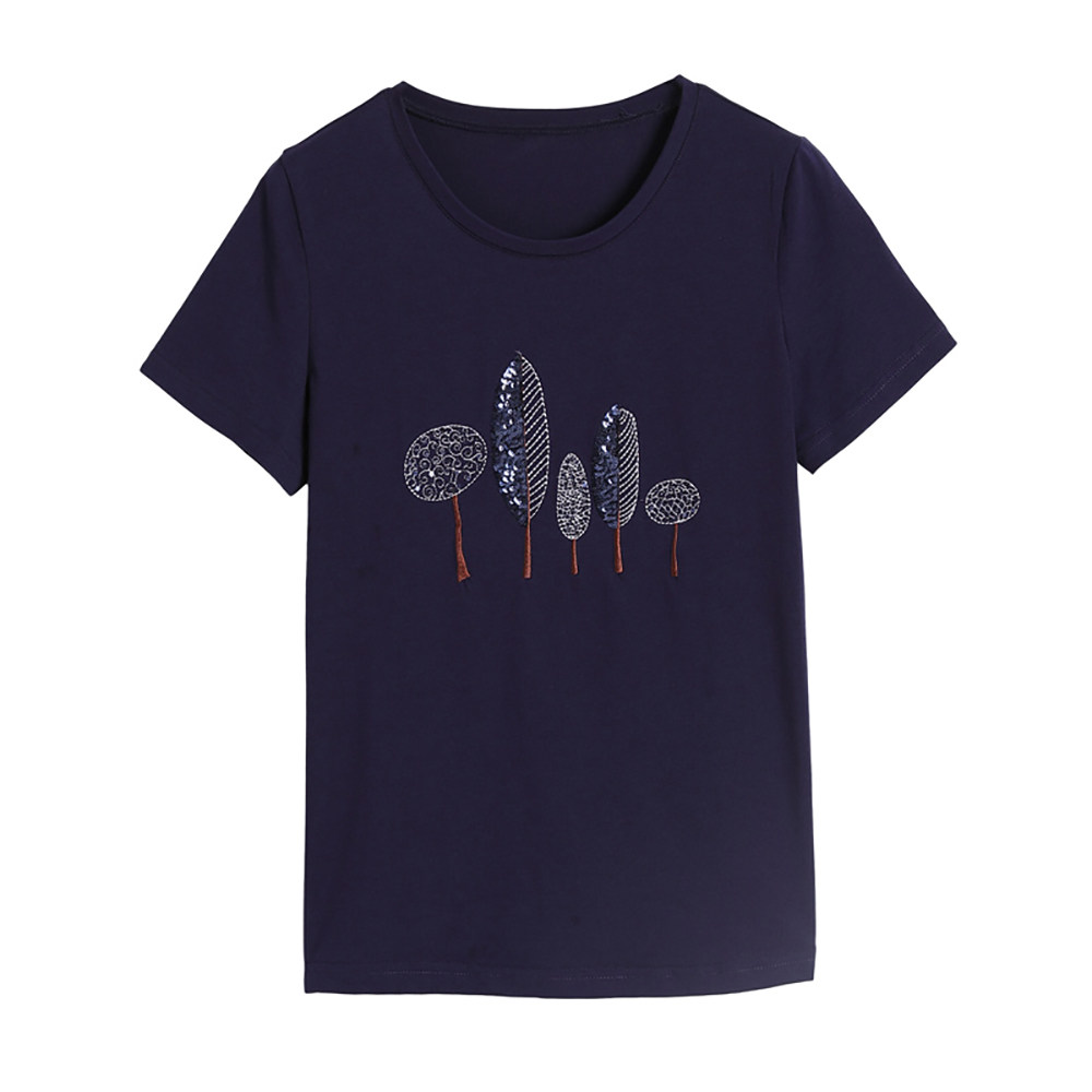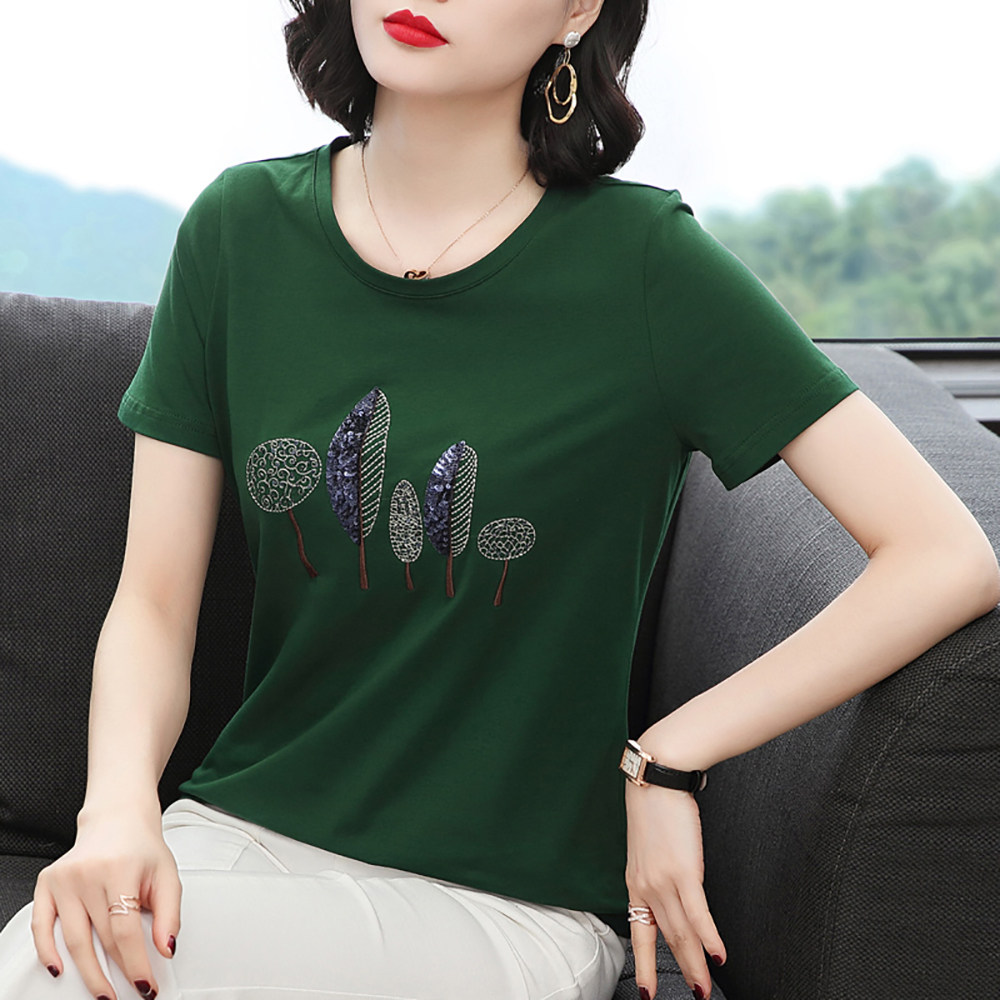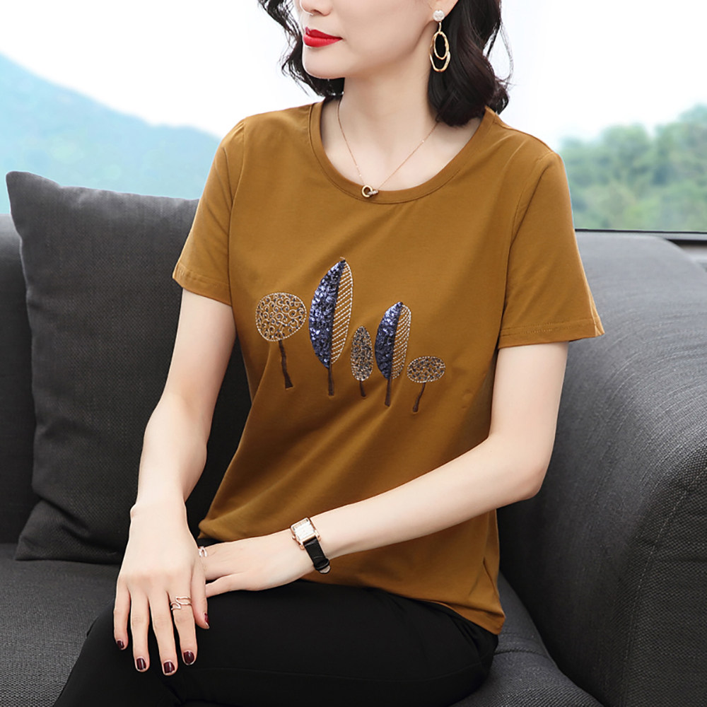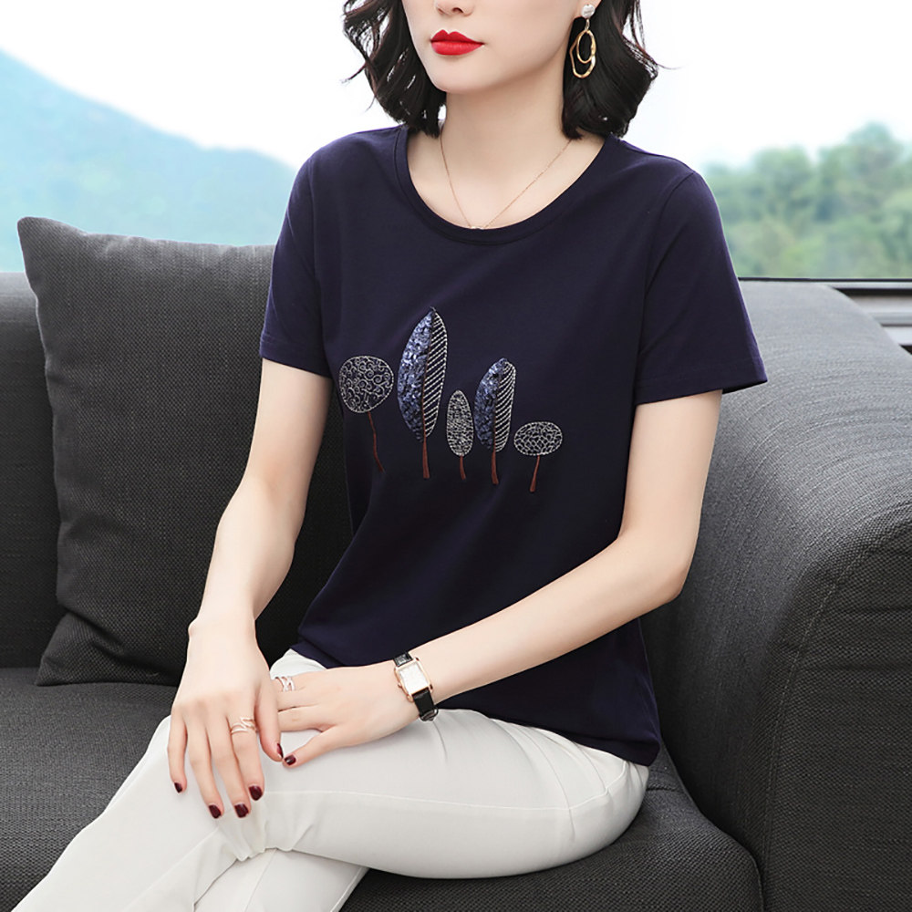 Summer ladies short sleeve cotton t shirt new loose embroidered middle-aged mom loaded with a toilet shirt
