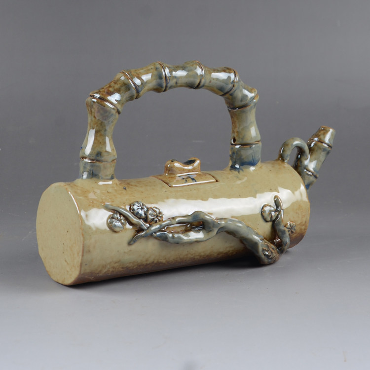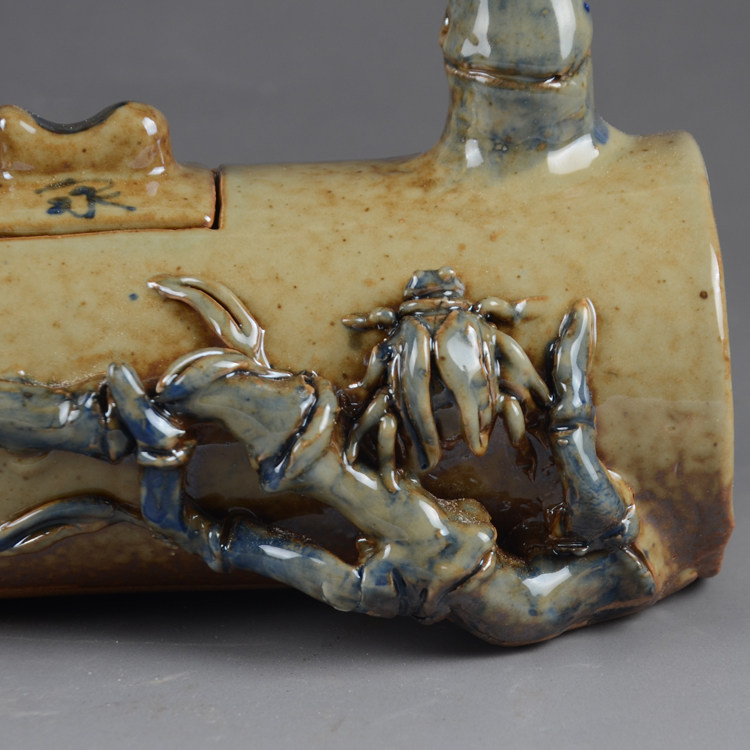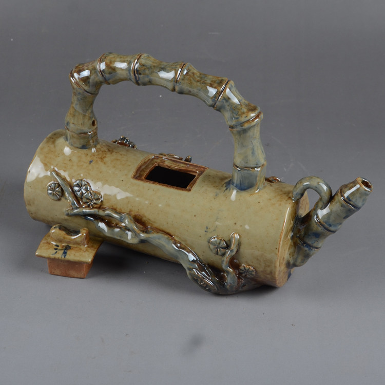Antique antique porcelain collection Jingdezhen factory goods Ceramic hand-pinched carved bamboo beam pot Teapot jug ornaments