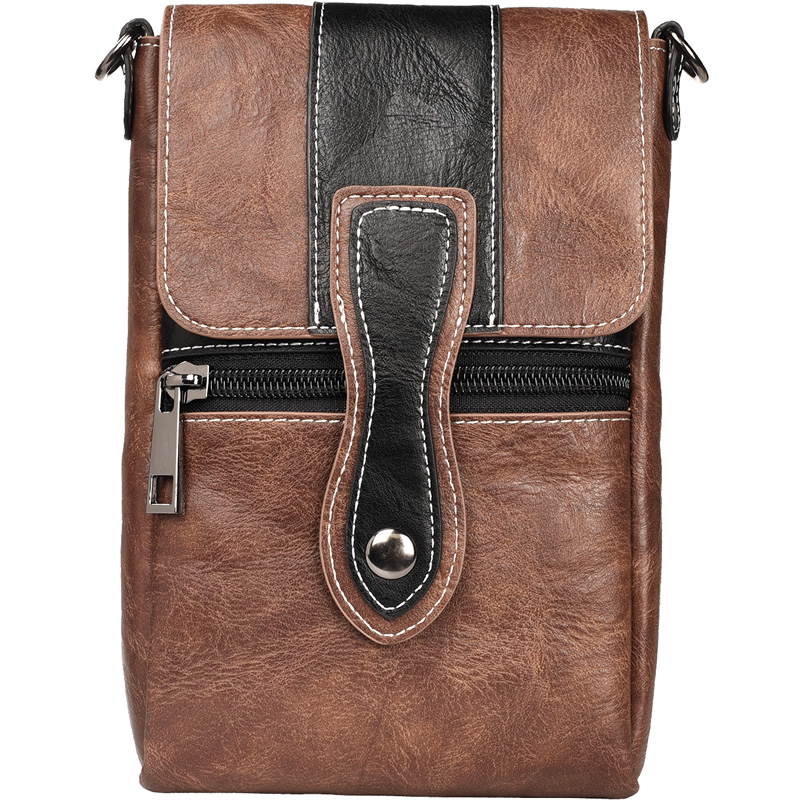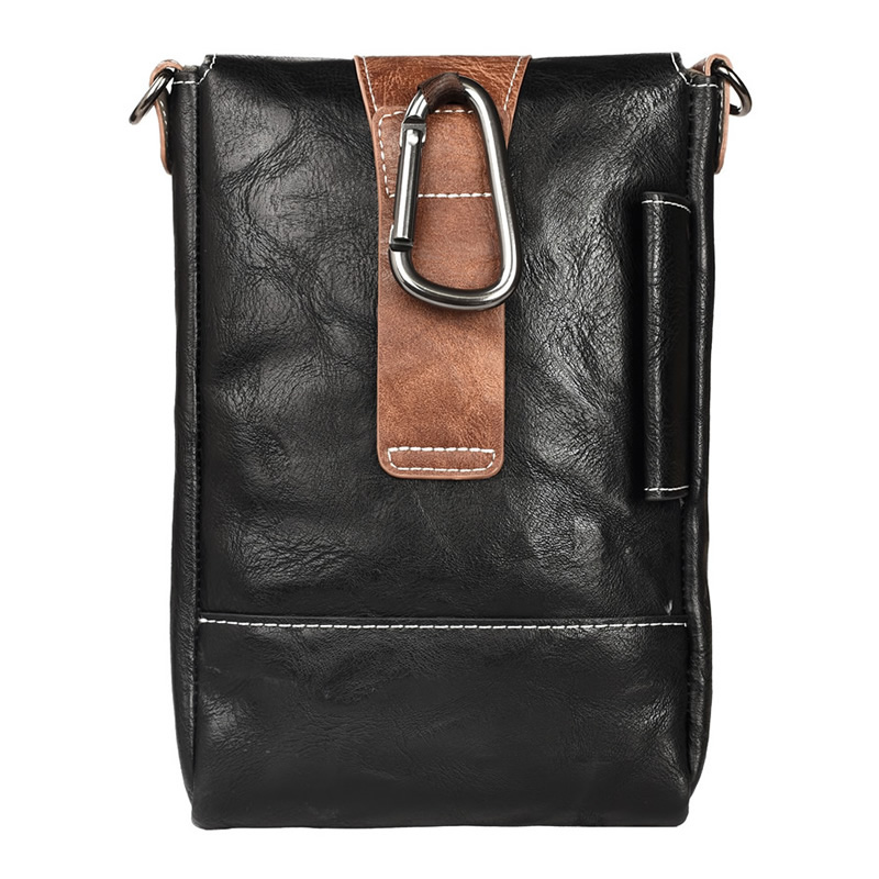 Retro large capacity mobile phone hanging pocket wearing leather strap multifunction single shoulder diagonal satchel middle-aged men's new wave Japan-ROK style