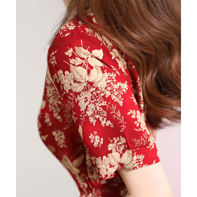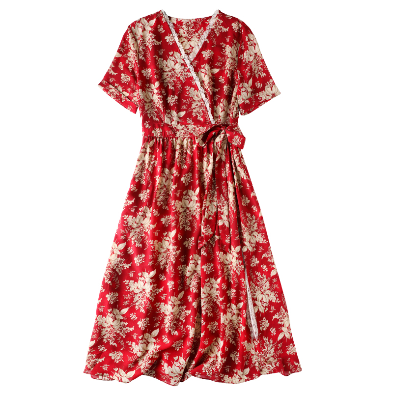 Malcenl klon flower print bellflower dress 2020 new V-neck thin long-sleeved chiffon skirt