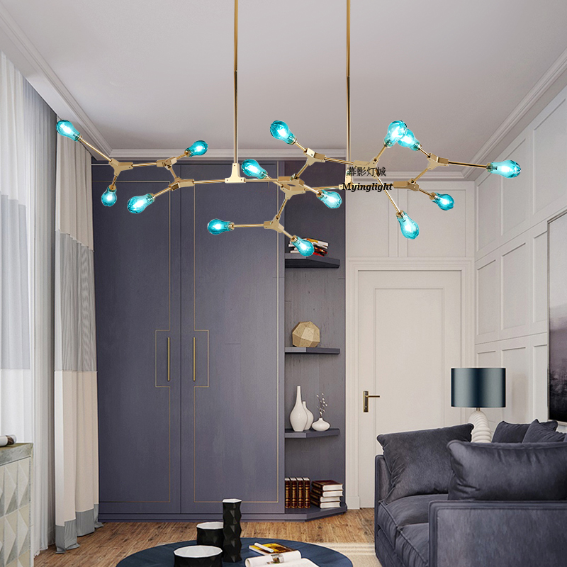 Postmodern engineering dining room bar Nordic molecular tree branch lamp model room designer hotel lobby glass chandelier