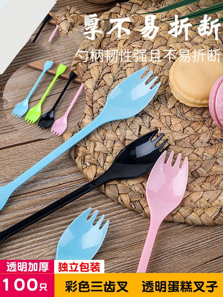 Disposable fork plastic fruit fork transparent cake fork long handle fork spoon individually packaged takeaway tableware