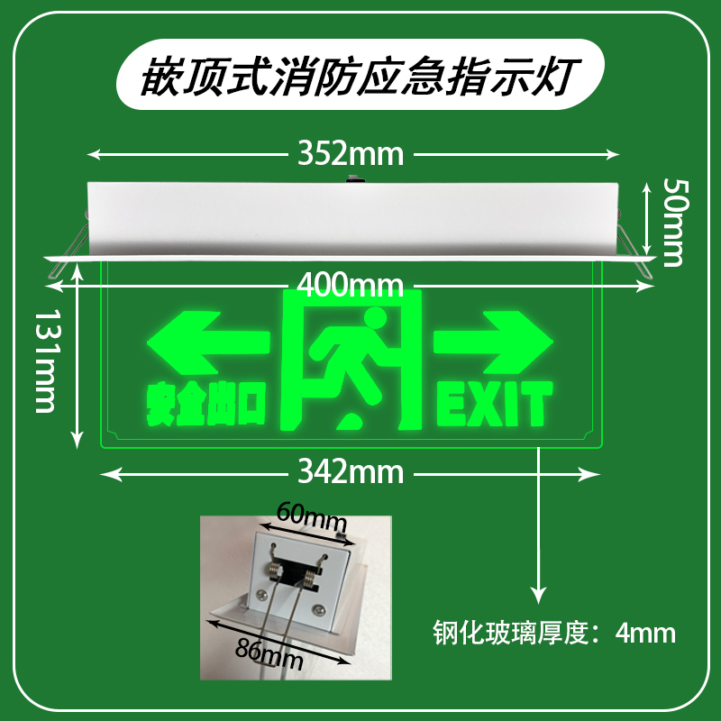 Glass hoisting embedded crystal emergency channel sign safety exit toilet evacuation sign led light