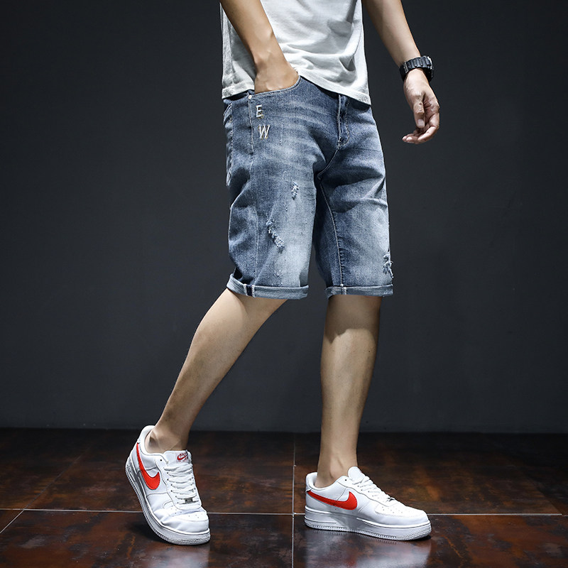 Denim Shorts Male summer slim Tide Cards Loose Straight Drum 50% Pants Youth Korean Version Trend 100 Hitch Casual Mid Pants