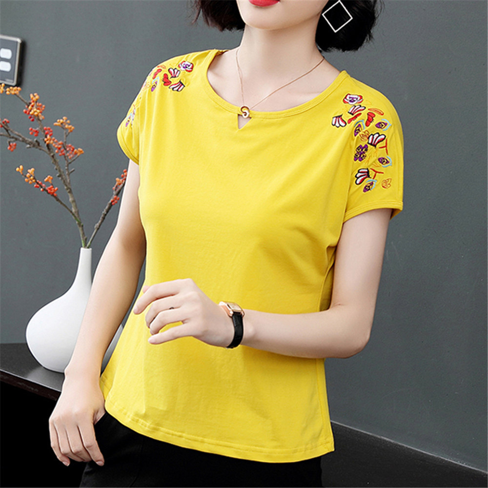 Middle-aged mother's embroidered t-shirt women's short-sleeved Chinese style 2022 new summer loose half-sleeved ethnic style top