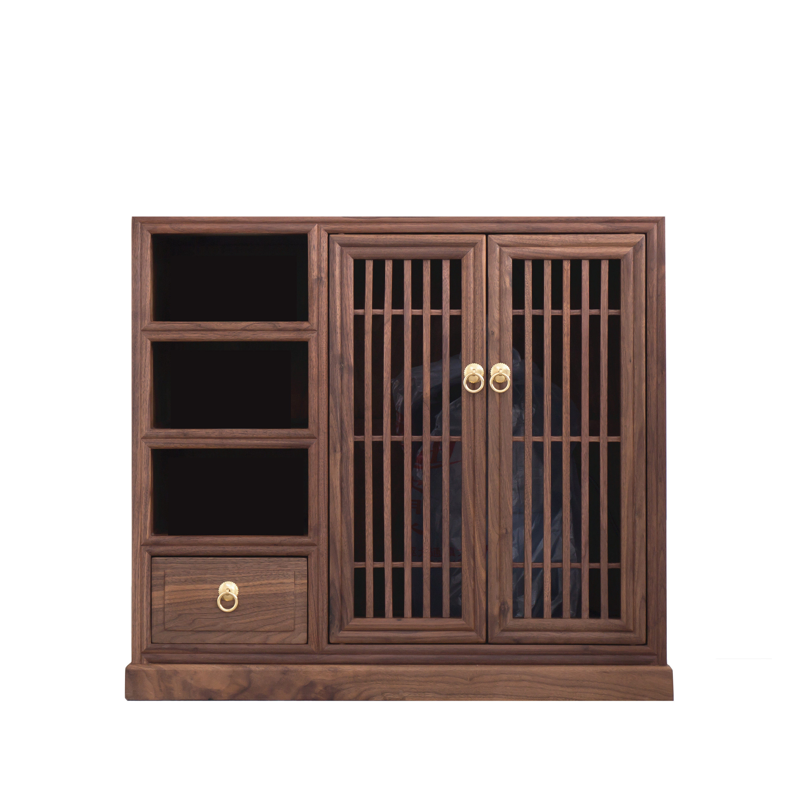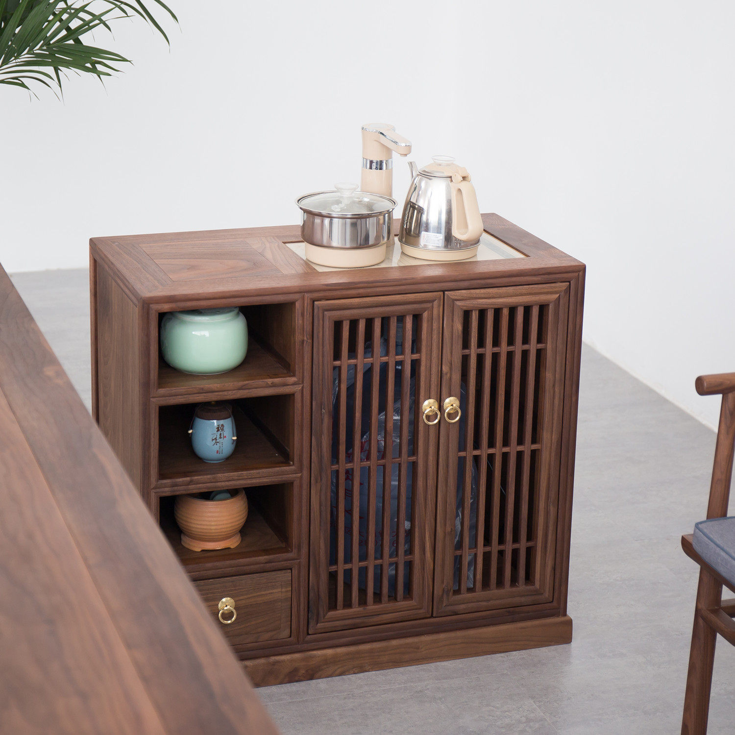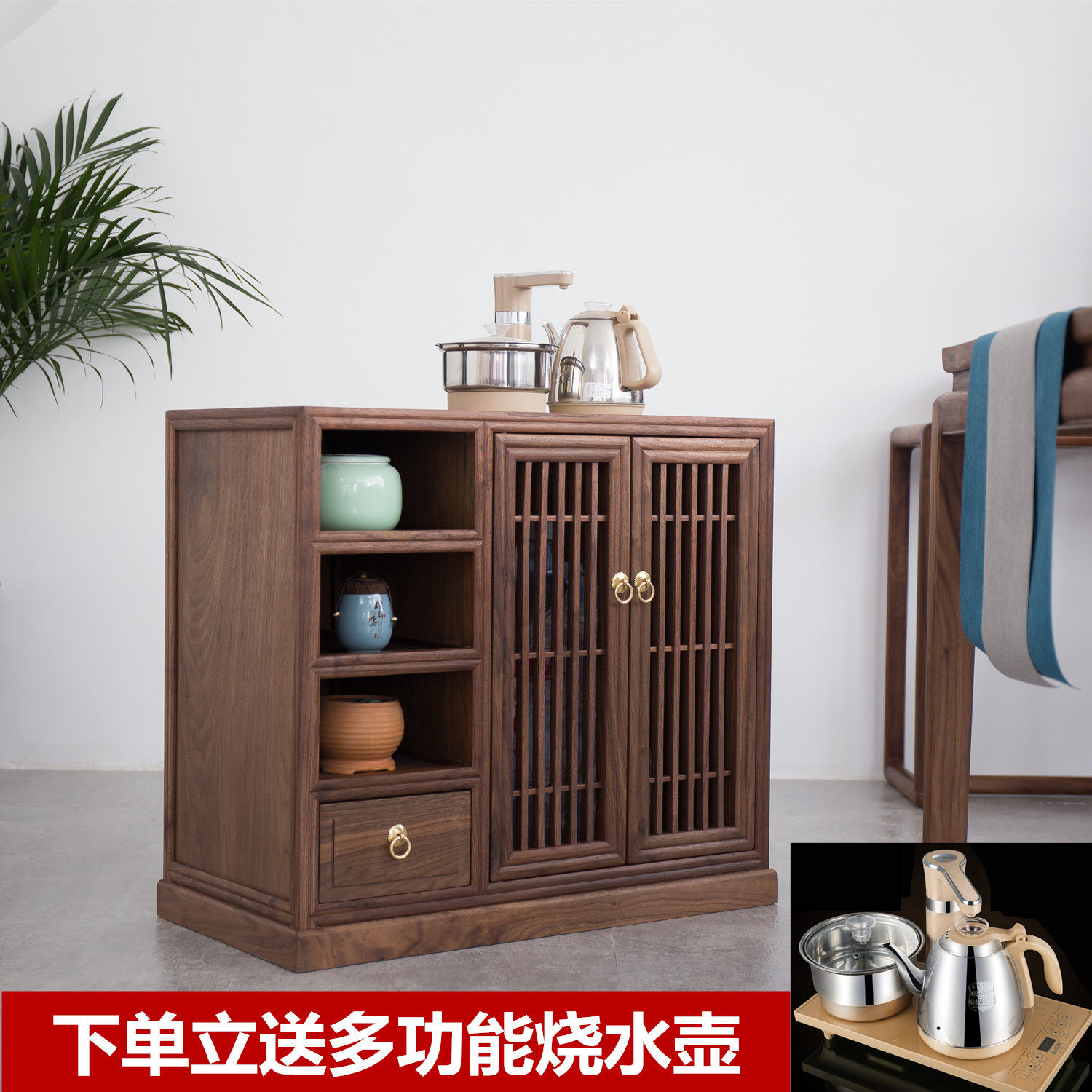 Xumu new Chinese tea cabinet side cabinet black walnut simple dining cabinet old elm solid wood kettle integrated tea cabinet